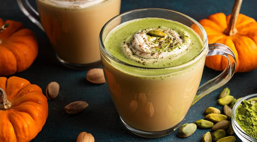 Wyjątkowe połączenie aromatycznej dyni, przypraw korzennych i matchy, idealne na chłodne jesienne i zimowe dni.