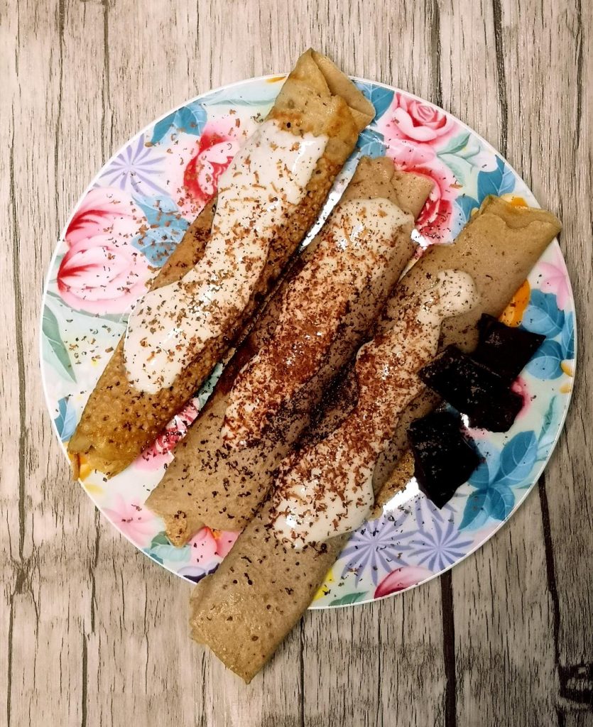- Smaż niewielkie naleśniki – w ten sposób będzie Ci je łatwiej przewrócić. Naleśniki gryczane są bardzo delikatne.