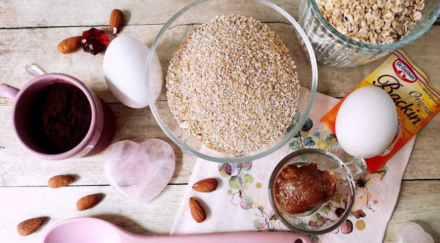 • opcjonalnie – garść rodzynek, owoców goji, suszonych śliwek oraz starkowane na tarce o dużych oczkach jabłko (nadaje wypiekowi większej wilgotności)
