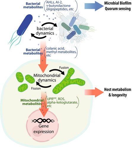 Ze względu na podobną rolę odgrywaną w życiu człowieka – współudział w procesach metabolicznych oraz odpornościowych a także z uwagi na wspólną przeszłość, hipoteza, iż mitochondria oraz zamieszkujące nasz organizm bakterie pozostają ze sobą w ścisłym kontakcie i mogą się ze sobą komunikować, wydaje się być jak najbardziej naturalna. Uczeni, którzy zainteresowali się tym tematem, poszli nawet o krok dalej, spekulując, iż wpływ, jaki jest wywierany przez mikrobiom na nasz organizm, ma wiele wspólnego z wykazywaną przez niego zdolnością regulowania procesów, które przebiegają na poziomie mitochondrialnym. Z kolei zmiany w zakresie diety gospodarza, jego stylu życia, ewentualna antybiotykoterapia i inne przyjmowane leki mogą w drastyczny sposób modyfikować zarówno skład jak również same czynności bakterii jelitowych. Tymczasem jak wskazują badania: kompozycja, liczebność oraz namnażanie mikrobiomu to istotne markery naszych procesów starzenia [5].
