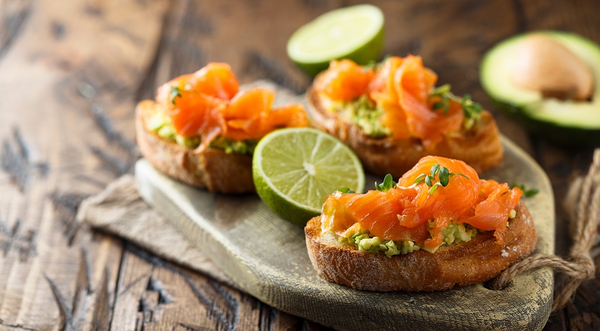 Bagietki razowe z twarożkiem kozim, łososiem wędzonym i awokado