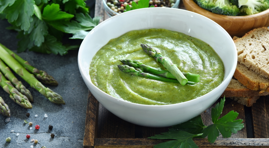 Krem z zielonych warzyw z dodatkiem szparagów