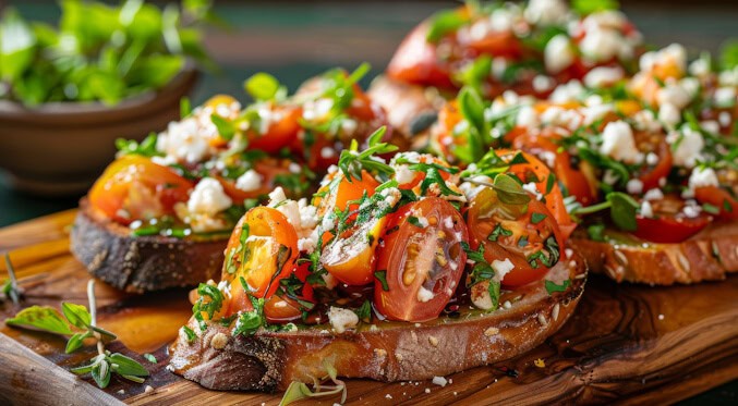 Śródziemnomorskie bagietki z serem kozim i świeżymi ziołami