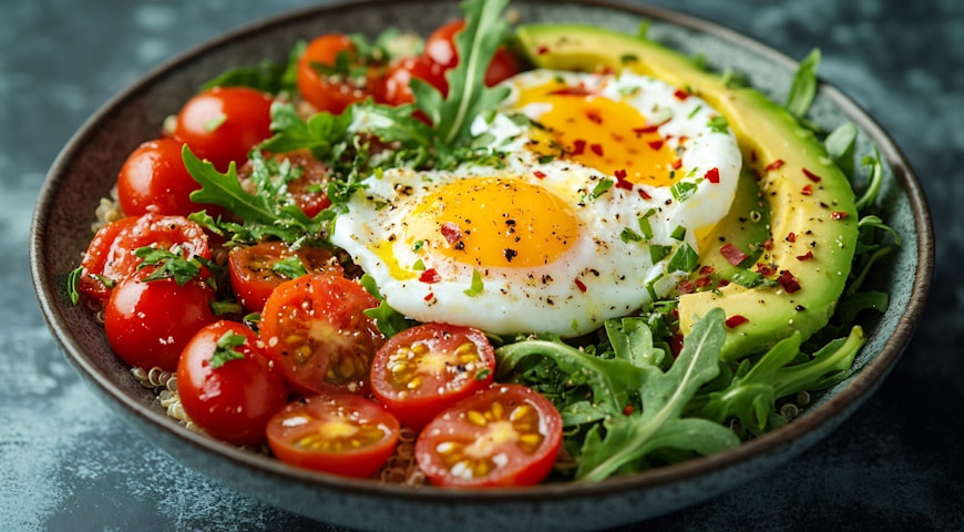 Śniadanie mocy – miska rozmaitości z jajami ekologicznymi