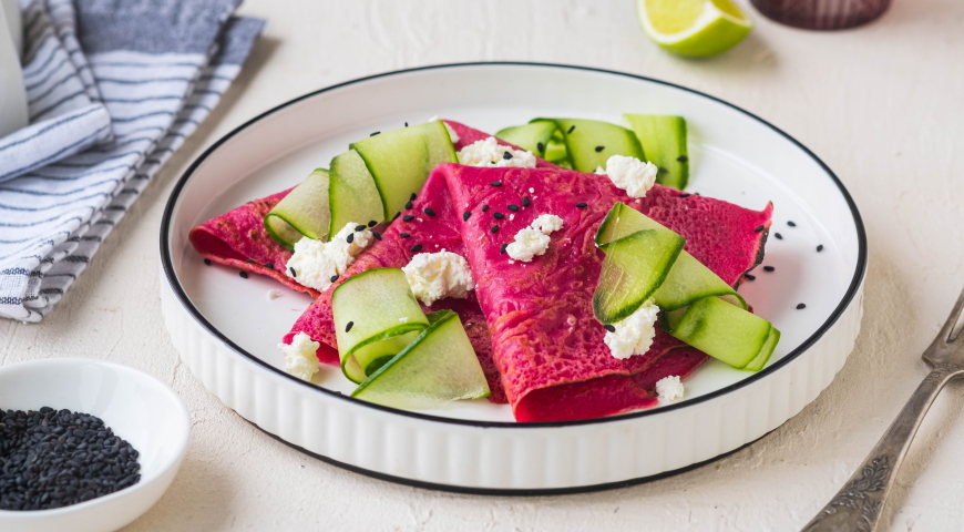 Przepis na francuskie naleśniki z sokiem z buraków, które można jeść na słodko i na wytrawnie.
