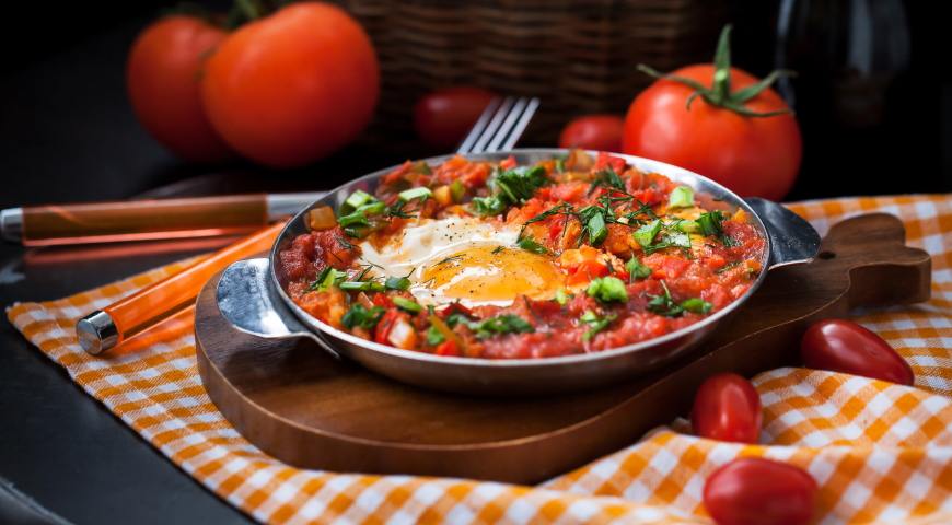 Poznaj przepis na szakszukę z czosnkiem niedźwiedzim i orientalnymi przyprawami o działaniu przeciwzapalnym.